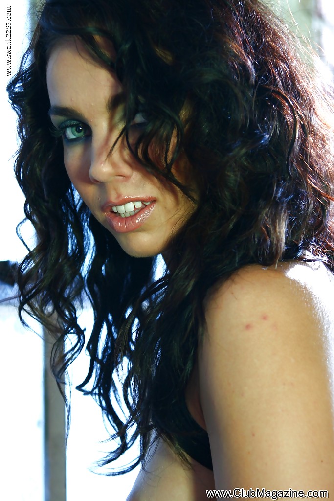 Кучерявая красавица позирует обнаженной в заброшенном месте