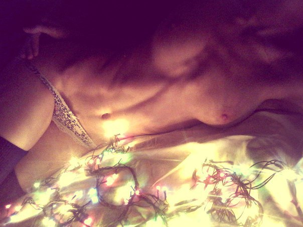 Голые девицы с узкой талией позируют на кровати