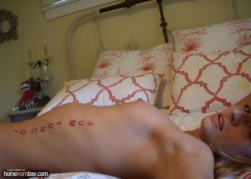 Ещё несколько снимков молодой блондинки, которая делает селфи, на этот раз в доме. Раздевшись до гола, тёлка позирует в кровати и фотает свои прелести, раздвигая ножки и показывая свою кисоньку. Блондинка снимает каждый сантиметр своего тела, всячески извиваясь в кровати.
