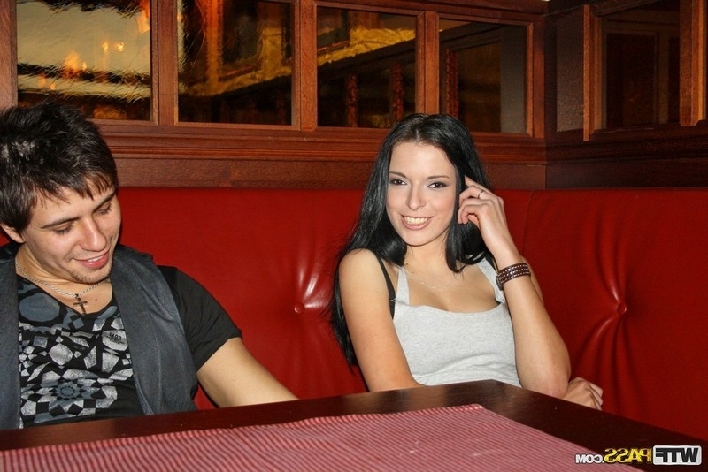 Грудастая брюнетка повелась на пару пикаперов и отсосала одному из них прямо в кафе, после чего парни увели давалку в туалет где вдвоечка обкатали ей рот и по очереди трахнули шкуру, покрыв её похотливую мордашку двойной порцией спермы.