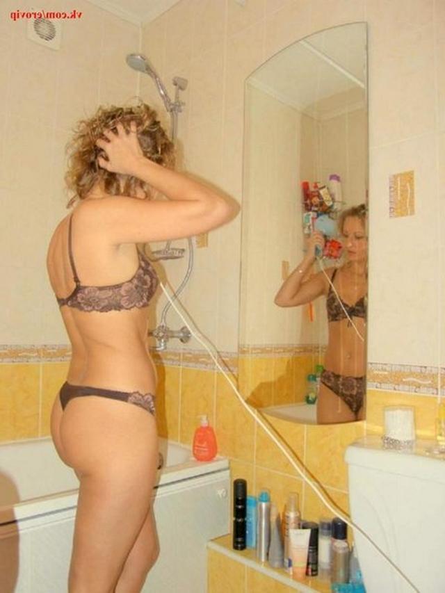 В домашних условиях телочка частенько ходит без одежды. Она рада показывать партнеру свою сексуальную задницу. Мужик уходит на работу позже, чем его супруга, поэтому у него есть возможность чуть дольше полежать в кровати и посмотреть как леди надевает на себя трусики и собирается на работу. Он частенько фотографирует ее сочную попку и влажную щель.