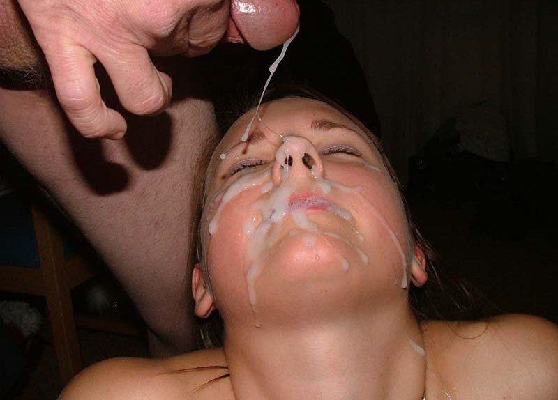 После минета сперма стекает в ротики милашек