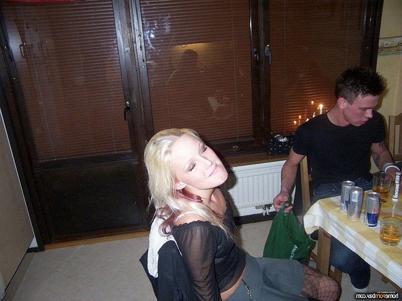 Пьяная блондинка позирует и раздевается на камеру