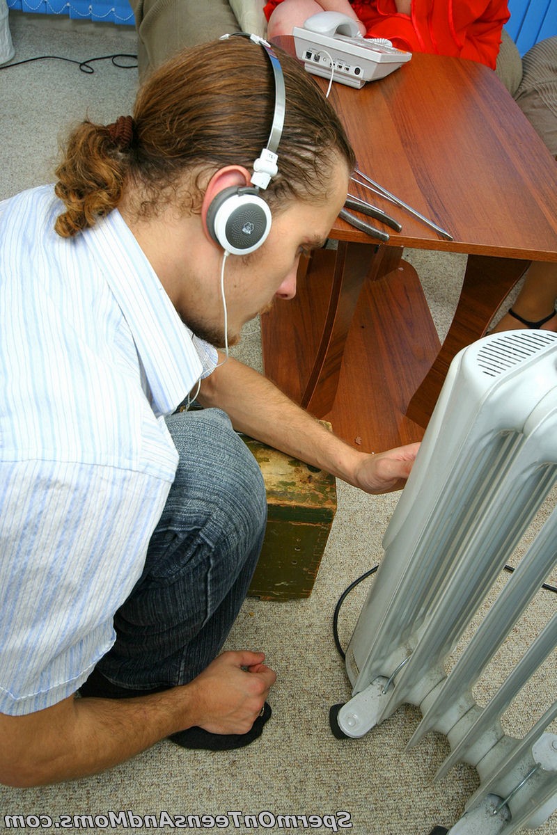 Недотраханные мужьями зрелые подруги вызвали электрика починить калорифер. Сделав свою работу, парень уже хотел было свалить, но тётки буквально накинулись на бедолагу и вместе выжали из него все соки. Они так давно не трахались, что бедолага еле выполз из квартиры)