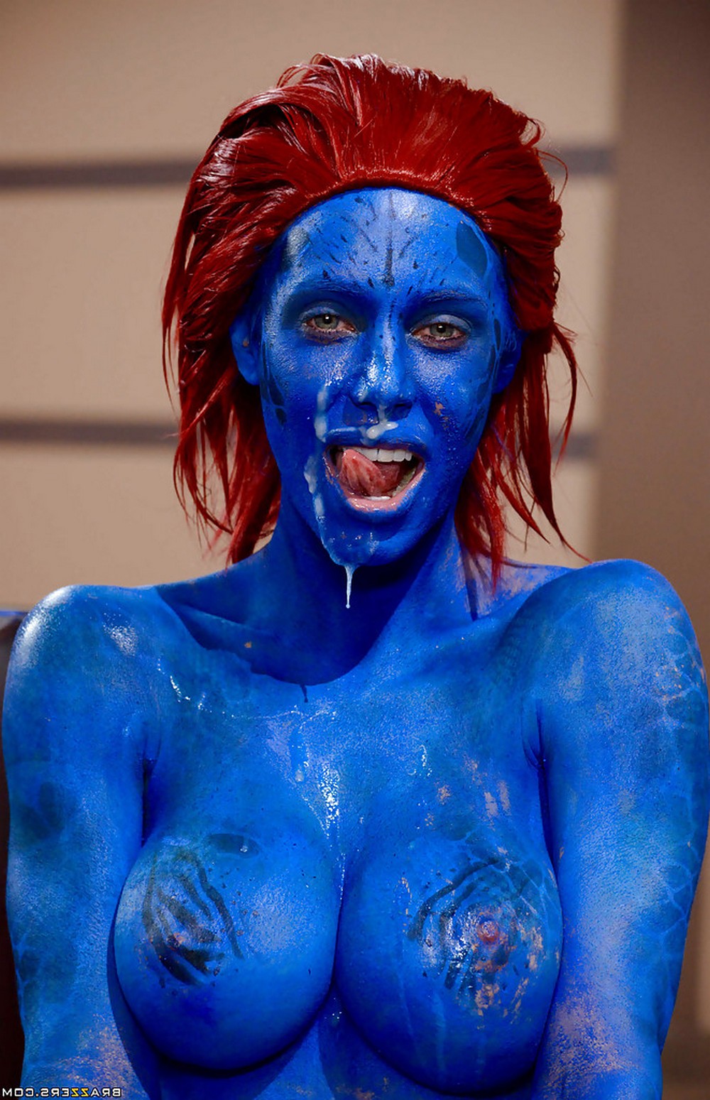 Будни Х-менов полны разврата и похоти, только взгляните как известные супергерои отдыхают от спасения человечества, занимаясь горячим сексом втроём. Росомаха и Циклоп расписали на двоих синюю нудистку Мистик и активно имеют её с двух сторон, заканчивая секс двойным камшотом.