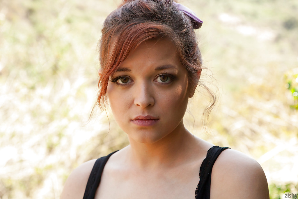 Молодая рыжеволосая девушка гуляла в лесу, и вдруг ей позвонил ее возлюбленный и пригласил в ресторан. Девица как раз купила себе вечернее платье и решила переодеться на природе. Воодушевленная предстоящим вечером, рыжая бестия медленно снимает с себя джинсы и обтягивающую маечку. Ее большая грудь выгодно смотрится в красивом белье. К машине девушка подошла во всем параде.